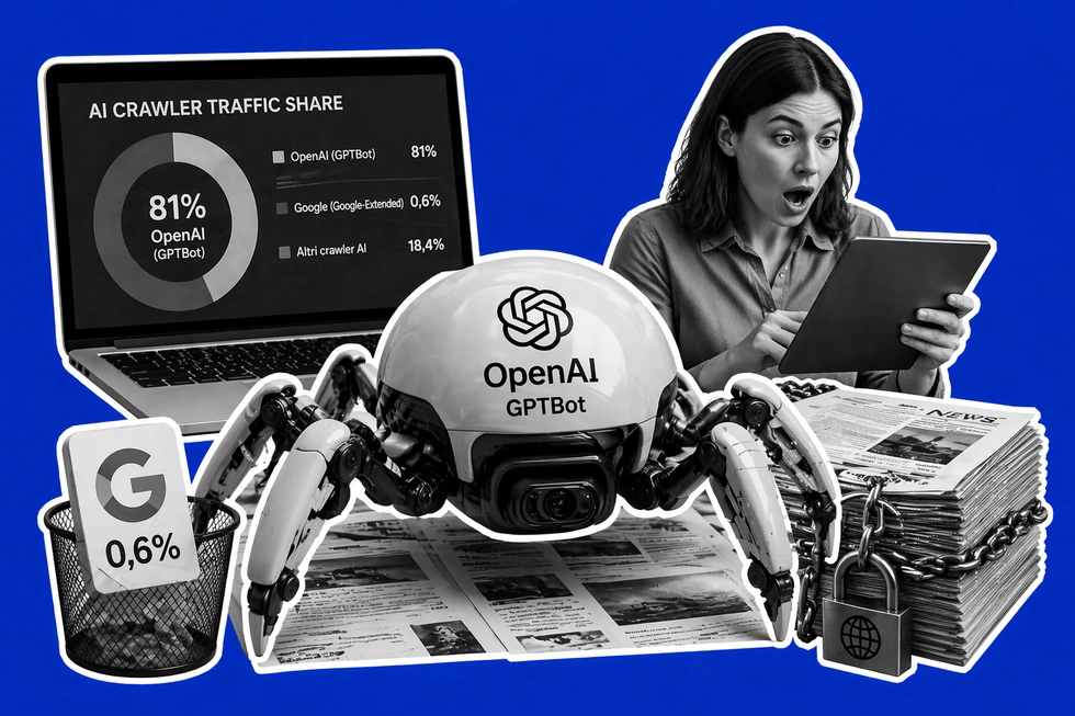 Un'analisi svela un monopolio invisibile: i crawler di OpenAI generano l'81% delle visite AI, surclassando Google (0,6%). Questi bot non portano traffico, ma estraggono dati per alimentare prodotti come ChatGPT. È un'estrazione di valore che minaccia l'ecosistema dei contenuti, creando una pericolosa dipendenza da un'unica azienda privata per la visibilità futura.