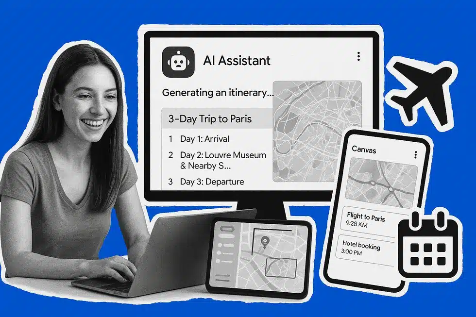 Il cuore di questa rivoluzione si chiama Canvas. Immagina di non dover più saltare da Booking a Skyscanner, passando per TripAdvisor e Maps. Google ha introdotto questo pannello laterale che si attiva quando inizi a pianificare un viaggio con l’intelligenza artificiale.