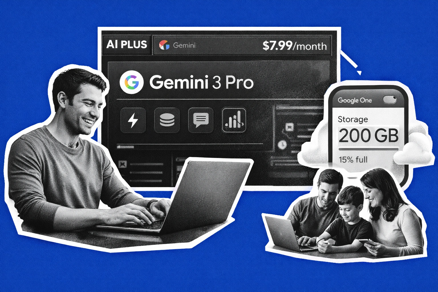 Google sfida OpenAI con il nuovo piano AI Plus a 7,99$, un'offerta di fascia media per democratizzare l'accesso all'IA. Include modelli come Gemini 3 Pro, 200GB di spazio e condivisione familiare, posizionandosi tra le opzioni gratuite e i costosi piani Pro. Una mossa calcolata per attrarre un pubblico più vasto e fidelizzare gli utenti Google One.