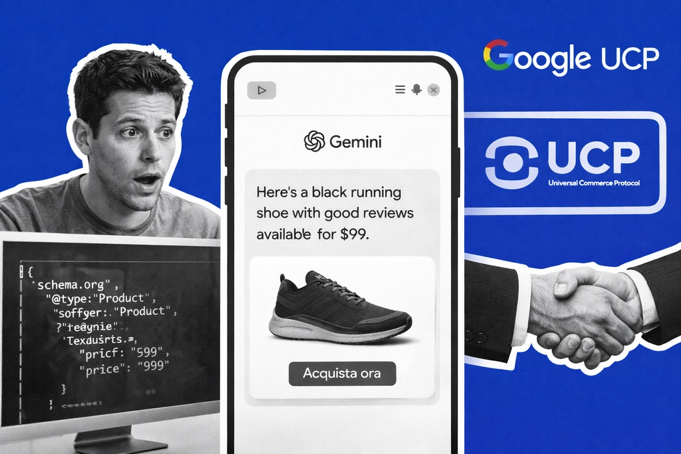 Google ha lanciato Universal Commerce Protocol (UCP), un sistema che permette acquisti diretti nelle chat AI come Gemini, bypassando i siti web. La mossa ha scatenato il panico nella comunità SEO. Sebbene John Mueller di Google inviti all'agilità, il messaggio è chiaro: la SEO deve evolversi. La visibilità non dipenderà più dal ranking, ma da dati strutturati perfetti per l'IA.